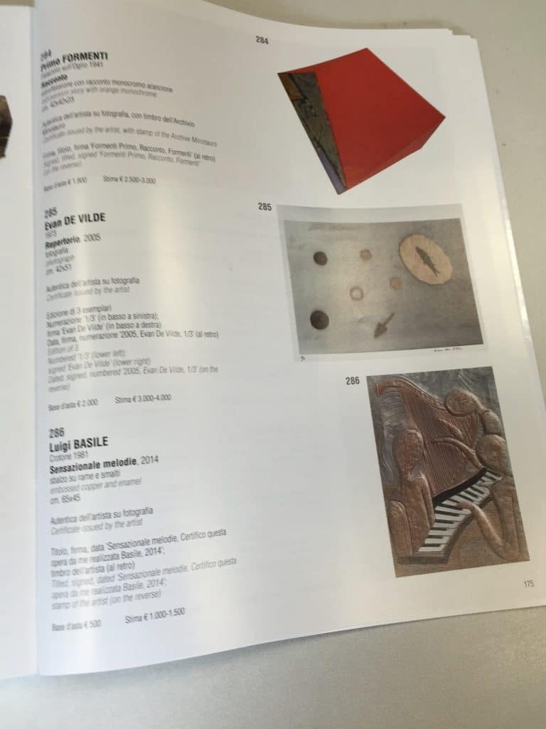 L’ 11 Maggio 2016, presso la Galleria Poleschi Casa D’aste, è stata battuta un’opera di Luigi Basile “Sensazionali Melodie” con la tecnica dello sbalzo su rame smaltato, mis 45×65 anno 2014.